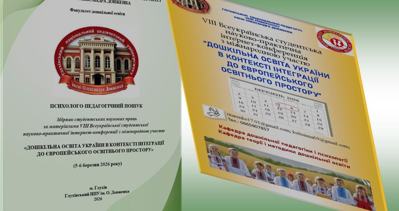 Раді повідомити про вихід електронного видання за результатами VІІІ Всеукраїнської студентської науково-практичної інтернет-конференції з міжнародною участю «Дошкільна освіта України в контексті інтеграції до Європейського освітнього простору», яка відбулася 5–6 березня 2026 року на базі факультету дошкільної освіти Глухівського НПУ ім. О. Довженка.